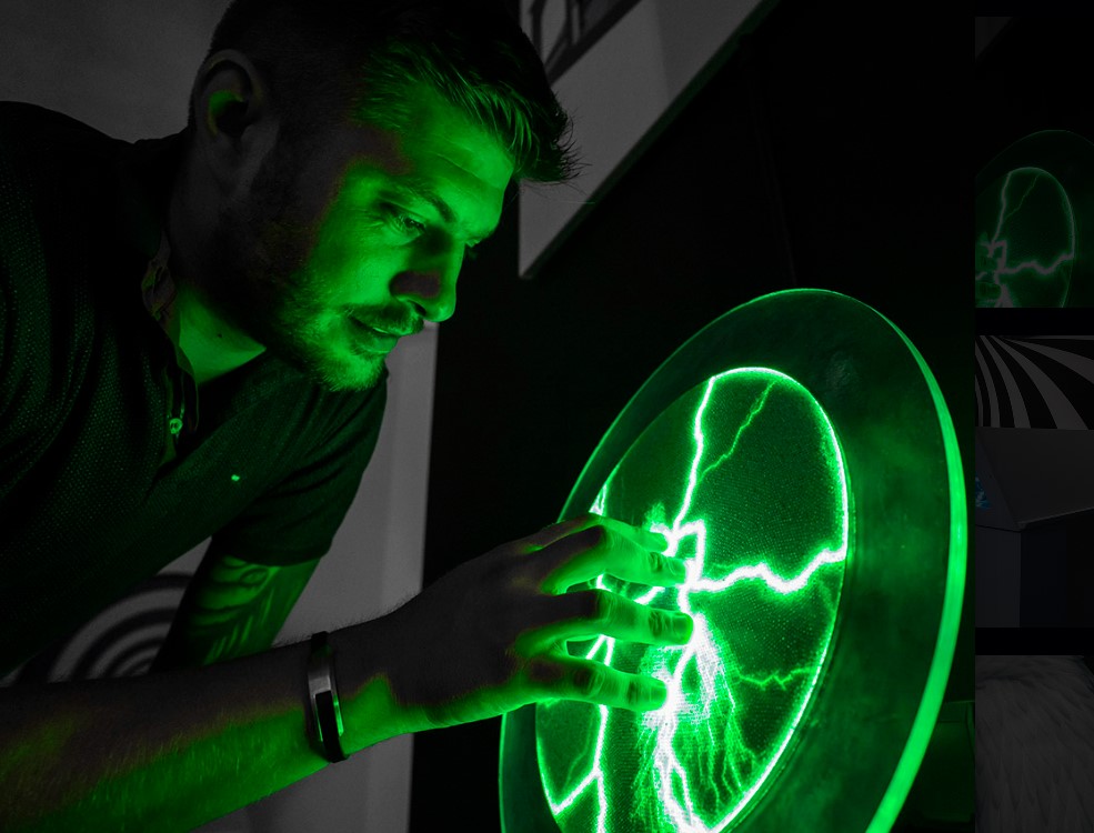 Помилуйтеся вражаючою плазмовою картиною, що базується на винаході Ніколи Тесли. Дозвольте себе захопити електричними розрядами, що звиваються у скляній кулі.