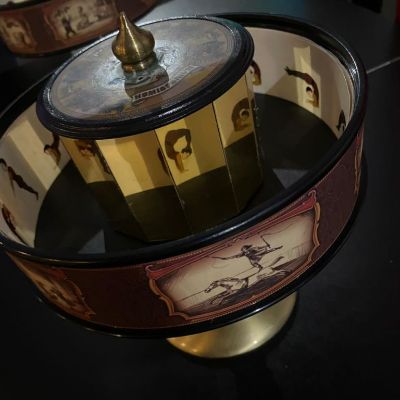 Відкрийте для себе чудову барабанну установку, пристрій, що використовує стробоскопічний ефект і був запатентований у 1834 році. Обертайте циліндр і уважно спостерігайте рухомі зображення через отвори.