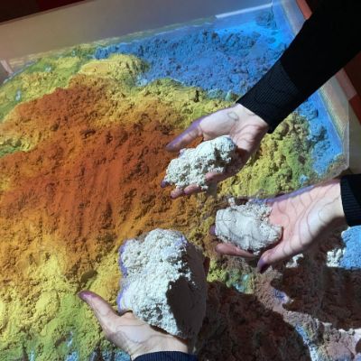 Грайте в цій інтерактивній пісочниці, яка представляє тривимірну топографічну карту та відтворює рельєф місцевості. Насипайте пісок за бажанням і створюйте власну карту.